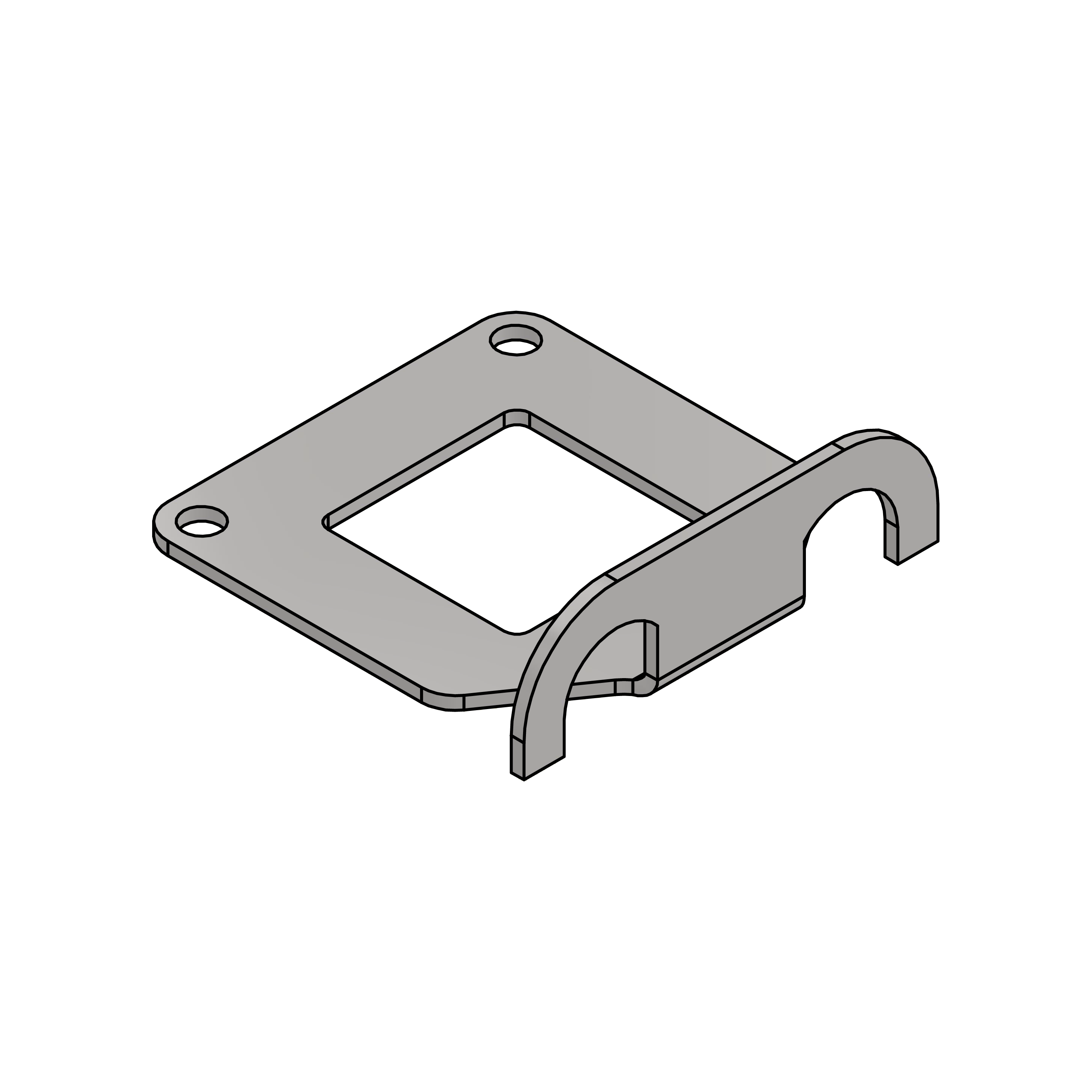 Torsion spring retainer designed for use with perforated back panels. Uses a perforated hole for attachment to the panel.